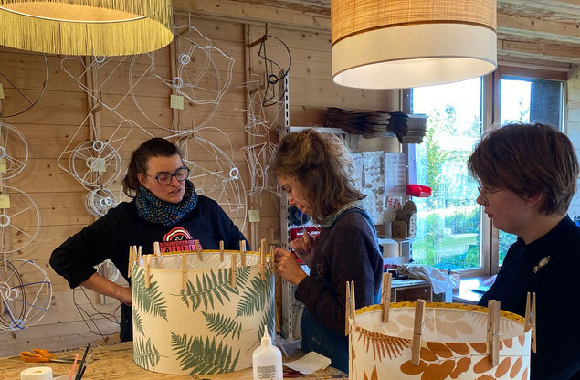 Envie d'une activité créative en groupe, entre amies, collègues ou en famille? Venez prendre du temps pour vous dans mon atelier le temps d'un stage d'abat-jour en tissu imprimé à la main pour une suspension ou un pied de lampe. A deux pas de St Claude et à 1h30 de Lyon, Dijon, Besançon et Genève, je vous accueille dans mon atelier spacieux et chaleureux.